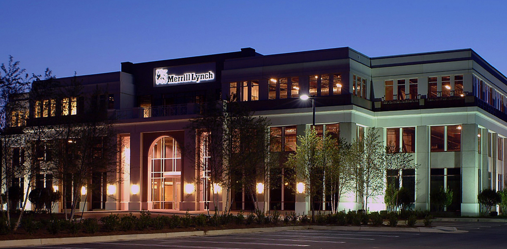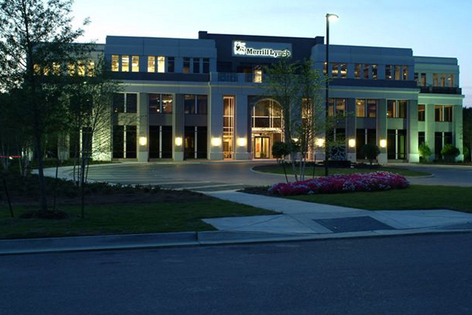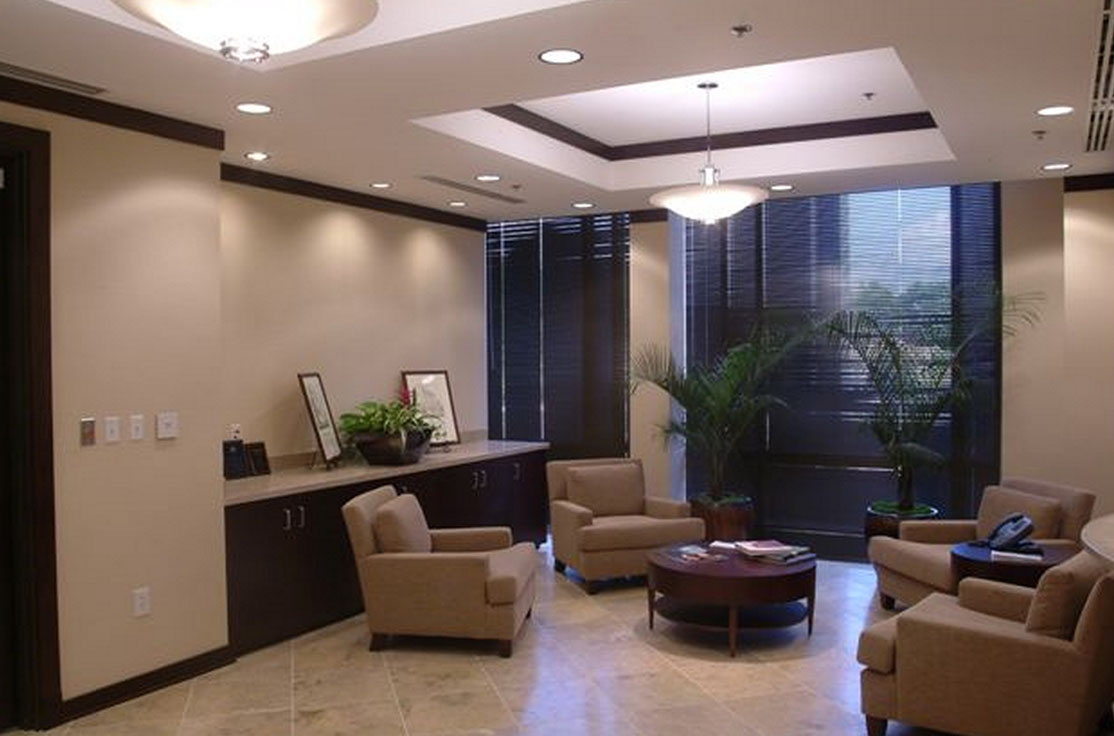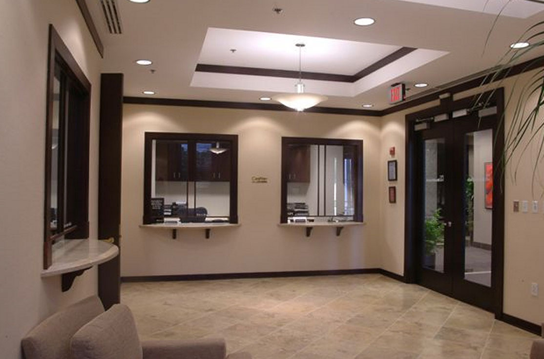 This Class A office building makes an architectural statement with coordinated tones of mahogany rendered in the pre-cast exterior. A brick-paved motor court leads to an arched entrance and into the luxurious lobby. Large windows flood the interior with light, enhancing the sophisticated colors of gray and coffee in the stone and carpeted floors. Paneled walls and coffered ceilings provide richness in detail and are lit to accent the expert craftsmanship.