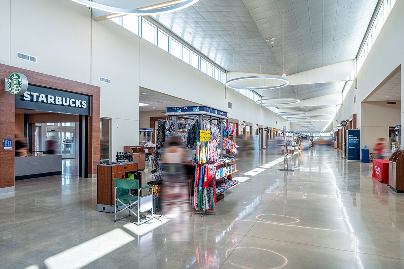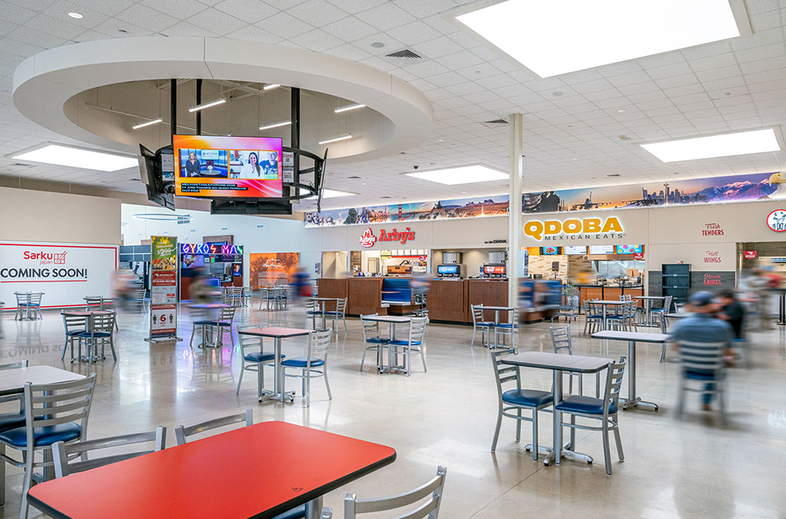 The center includes the central base exchange and a concession mall with a dental clinic and pharmacy. A food court will offer Starbucks, Freshens, Subway, Charleys, Qboda, and Arby’s. The exchange serves 263,000 authorized shoppers.