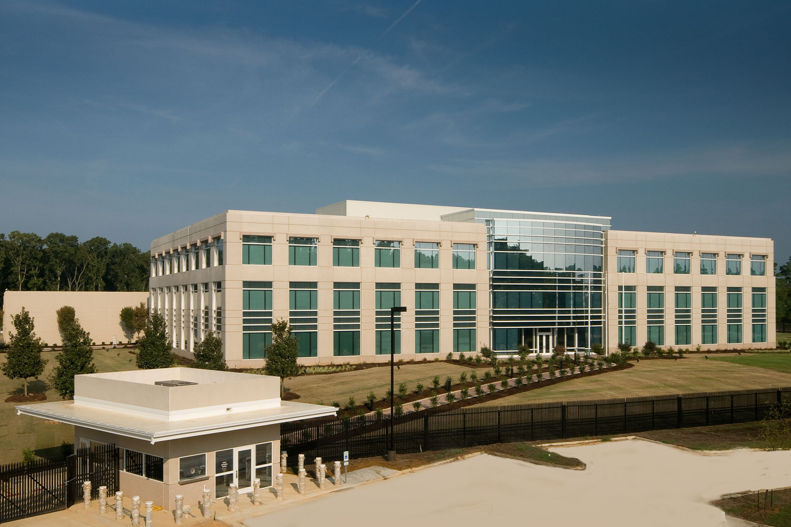 The GSA Echelon office building project also includes a 17,500 square-foot annex building for vehicle maintenance and a 156,000 square-foot enclosed two-story parking garage on a 10-acre parcel of land. The property has an array of notable details. The office building is comprised of structural steel with precast concrete and glass façade. The structural and building envelope elements were designed to be blast resistant. The interior showcases sapele paneling and marble in the public areas. This unique facility also features a fully-equipped gymnasium. The perimeter fencing includes an anti-ram security fence and vehicle barriers. The landscaping is comprised of an outdoor plaza with pavers, picnic tables and many other features. A Visitors Screening Facility (VSF) and guard shack are located at the building’s entrances.