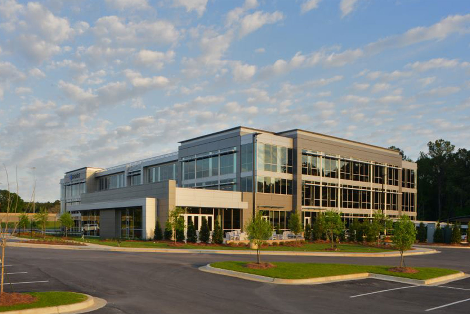 This three-story 95,000 sf Class A office building is situated on 6 acres in Ridgeland, Mississippi. The building has a structural steel frame built on drilled piers. The façade consists of metal panels and an aluminum storefront.