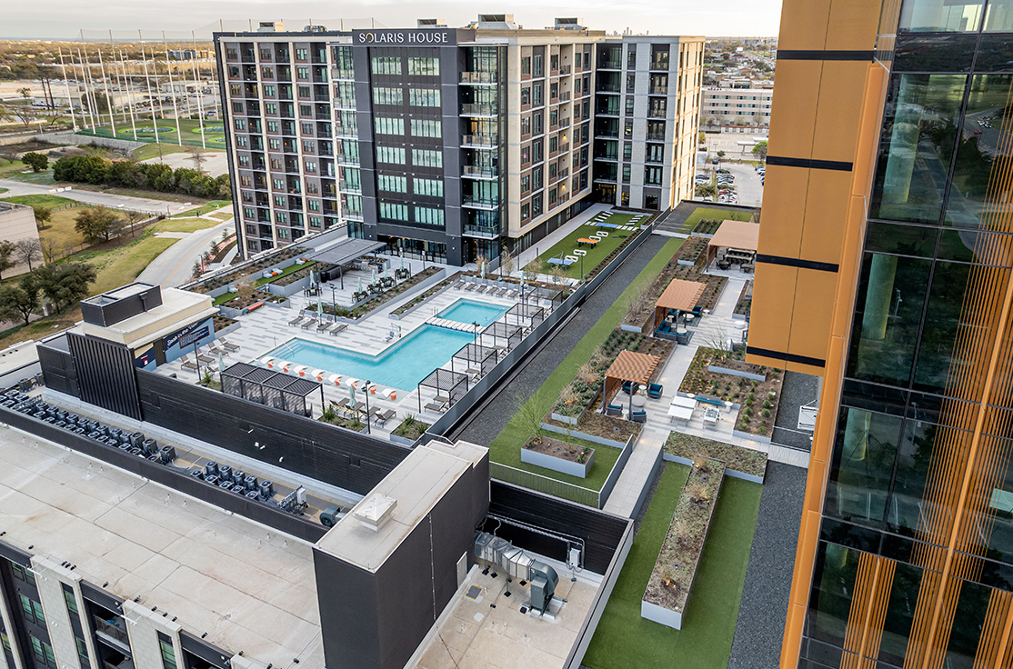 One Uptown ATX Office and Parking Garage is part of a mixed-use development located in Austin, Texas, on the site of the former IBM campus. This modern project blends high-performance office space with structured parking and retail, designed to support the needs of a growing urban hub. The 14-story concrete structure features expansive 44,000 sf floor plates, floor-to-ceiling glazing, and a curtainwall façade that maximizes daylight and views. It was built alongside and to integrate with One Uptown ATX Multi-Family, a 370,839, 13-story high-end apartment building, also built by White Construction.