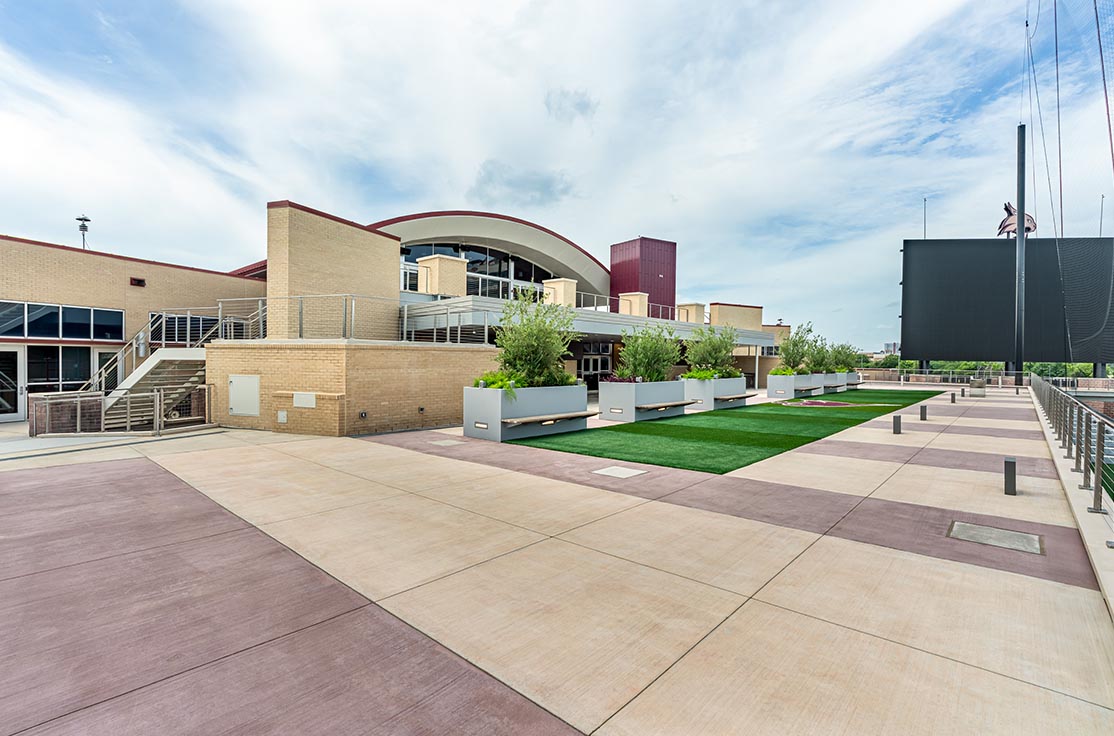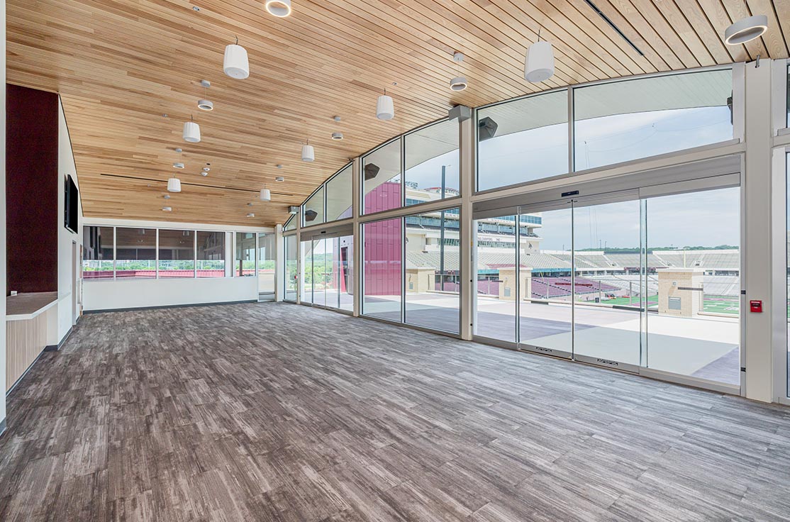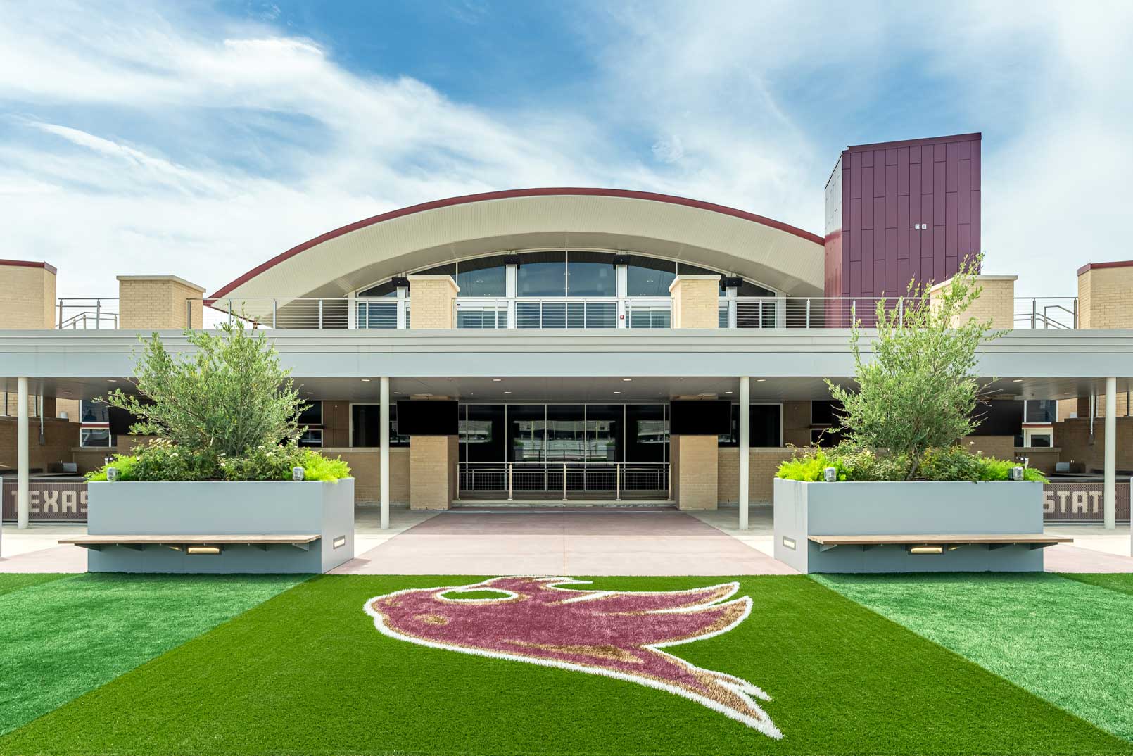 White Construction led the expansion of the end zone complex at Texas State University’s Bobcat Stadium, delivering a modernized facility that enhances both athletic performance and the gameday experience. The project included a renovation of the existing end zone building along with the addition of a new upper level designed for entertainment, hospitality, and banquet events. New concourses seamlessly connect the lounge areas to the stadium, while an exterior elevator provides convenient access to the newly expanded spaces.