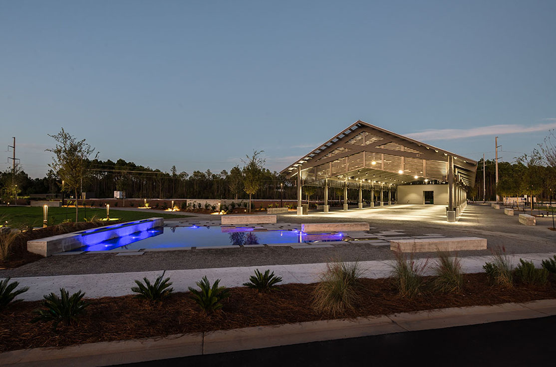 The St. Joe Company, a valued repeat client, is developing a Town Center at The Watersound Origins community in Walton County, Florida. White Construction Company built the first phase of the center, featuring a Retail Building and an outdoor Pavilion.