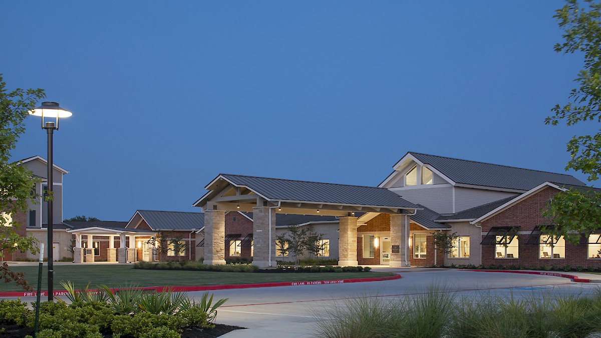 The Delaney at South Shore Harbor is a complex of five buildings totaling 204,000 sqft of space with a full suite of amenities, including courtyards with grills, counters, fountains, landscaping, ornamental fencing and a dog park. Common areas include commercial kitchen and dining areas, a bar, community areas with fireplaces, club room, fitness and exercise rooms, activities room, and administrative offices. Residential buildings have 120 independent living units, 55 assisted living units, and 32 memory care units and associated common spaces. The feature element of the complex is the Commons Building with a porte cochere entry, housing a gallery room. This grand space is distinguished with exposed wood timbers, tongue and groove wood plank ceilings and stained finish.